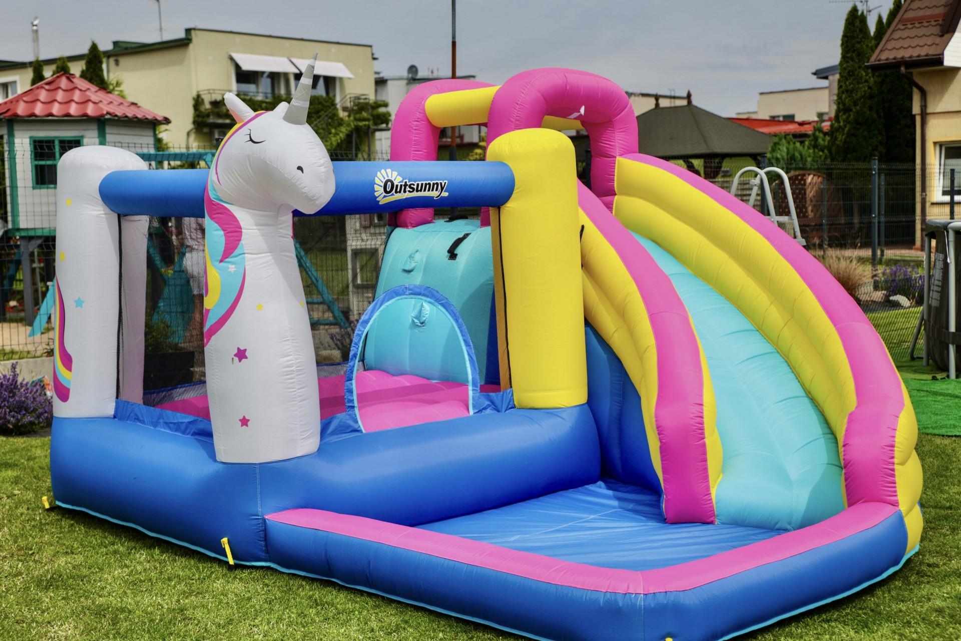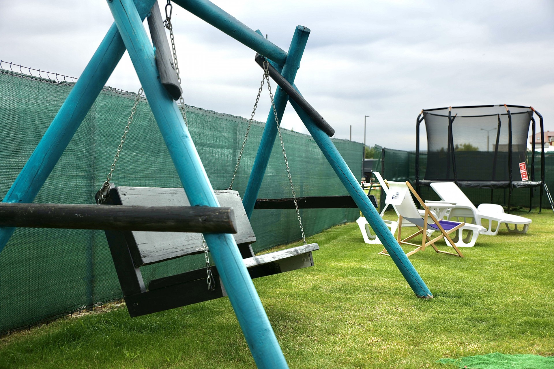 Obiekt rodzinny z dużym placem zabaw, basenem, trampoliną, miejscem na grilla, z dużą pełną kuchnią ogólnie dostępną.