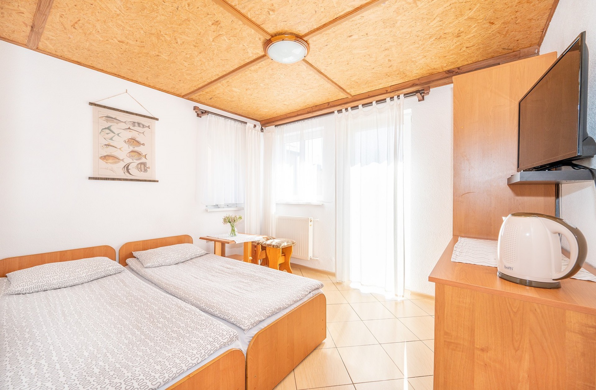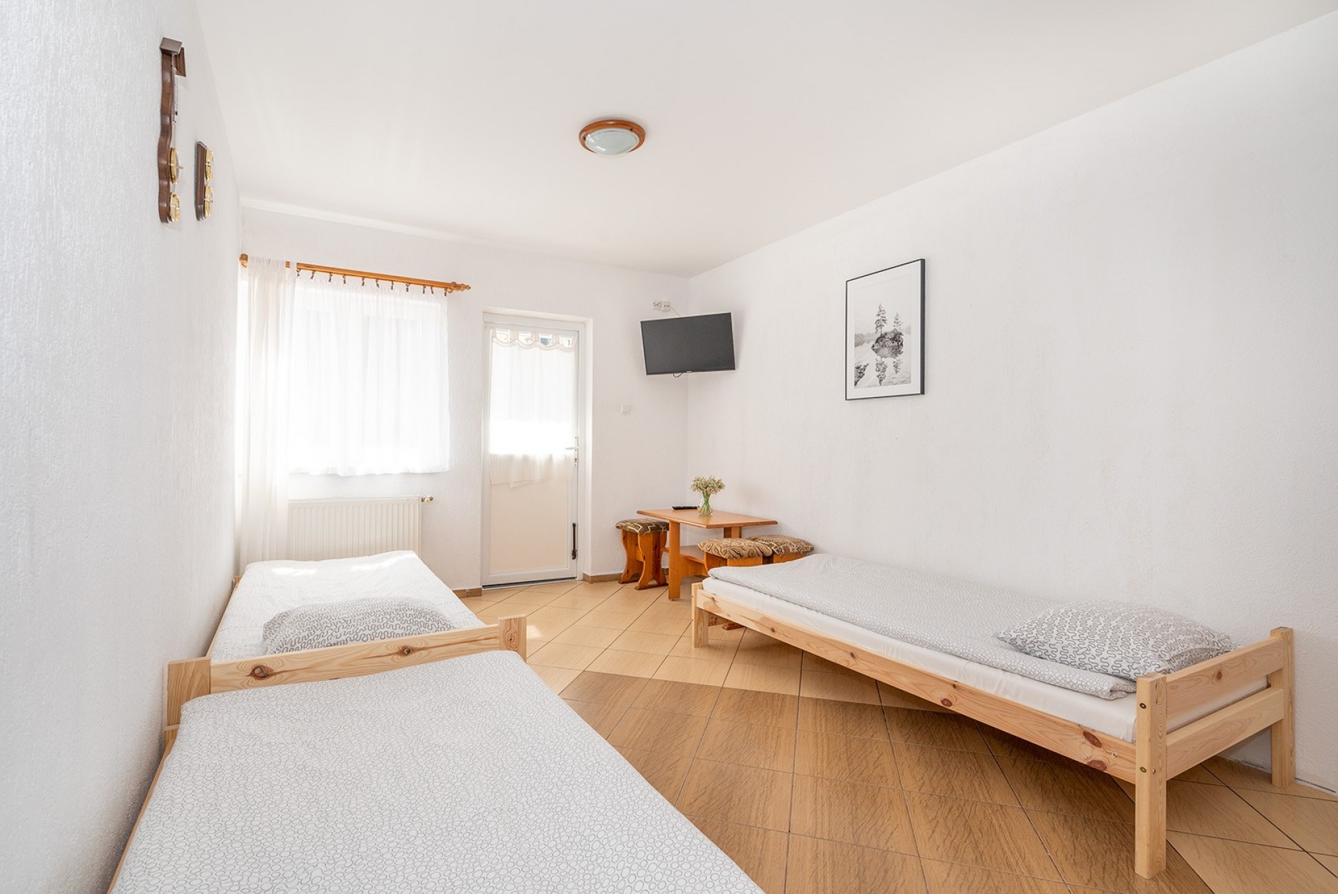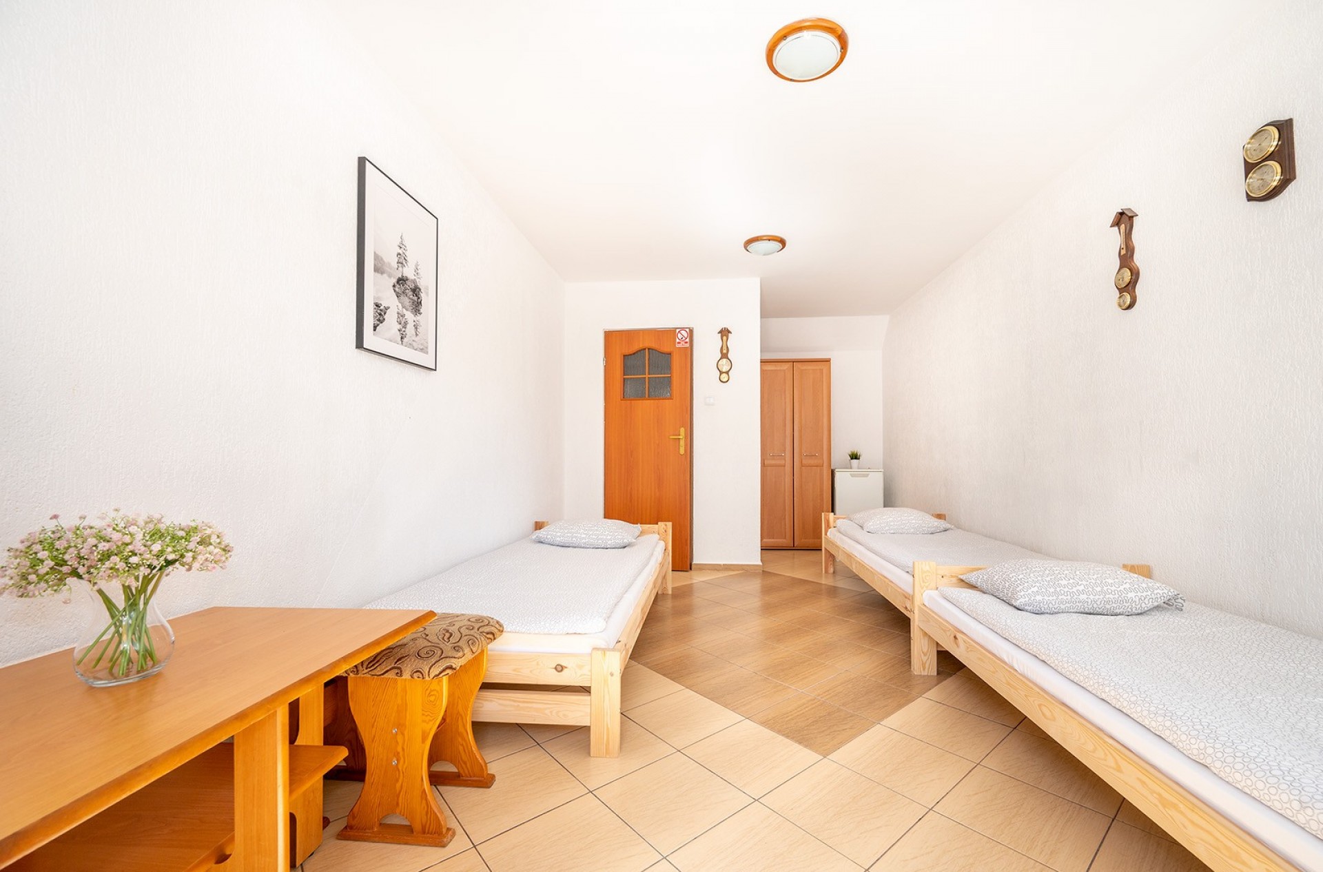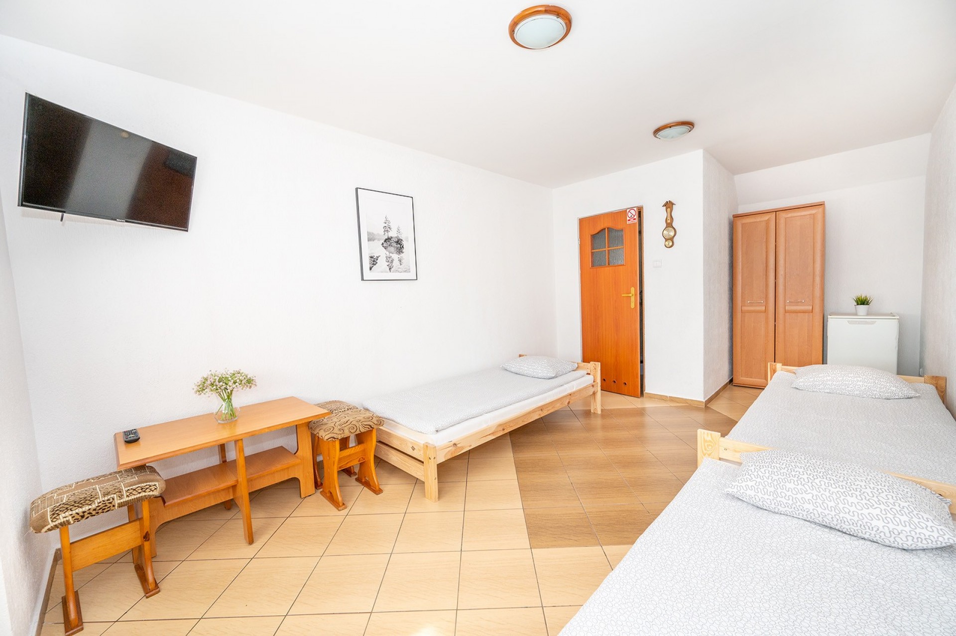 Do dyspozycji naszych gości oddajemy wygodne 2,3,4 oraz 5 osobowe pokoje z łazienkami, tv i lodówkami. Ilość miejsc 24.