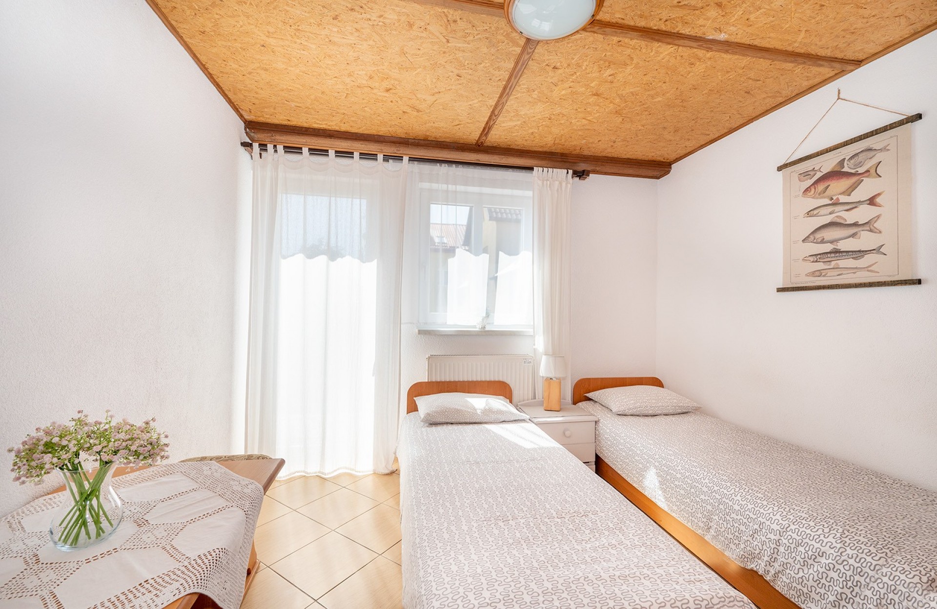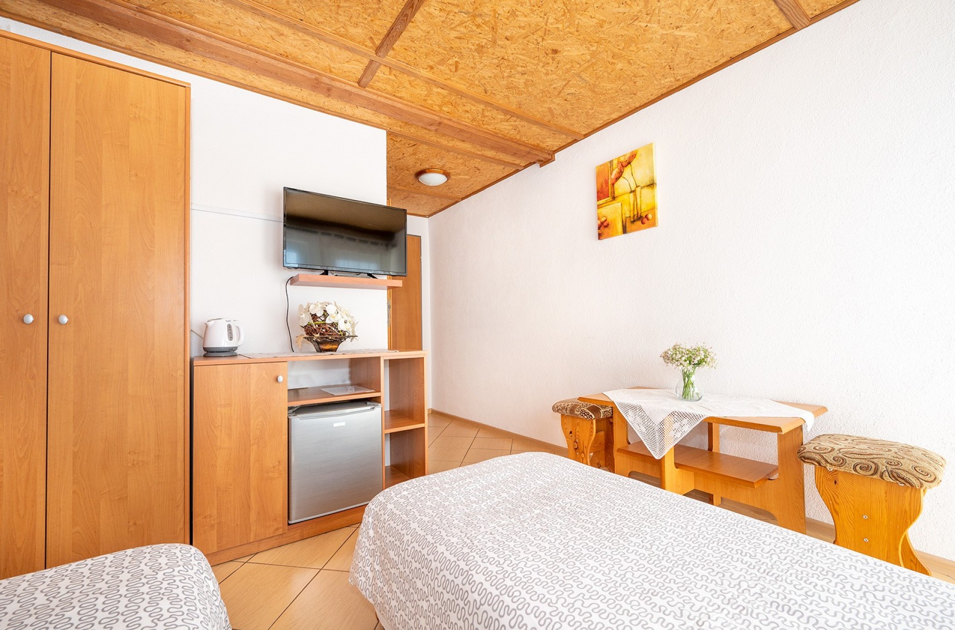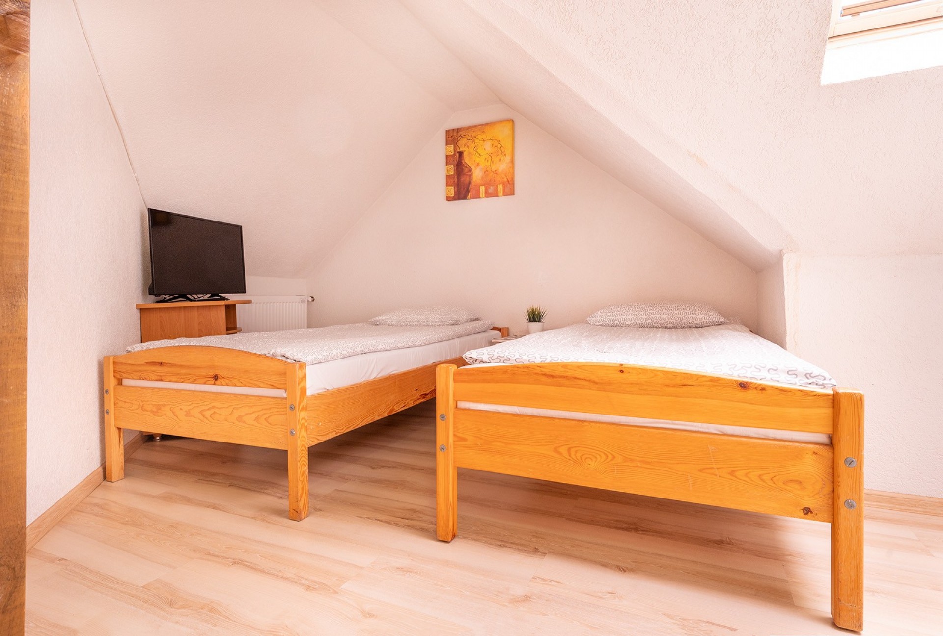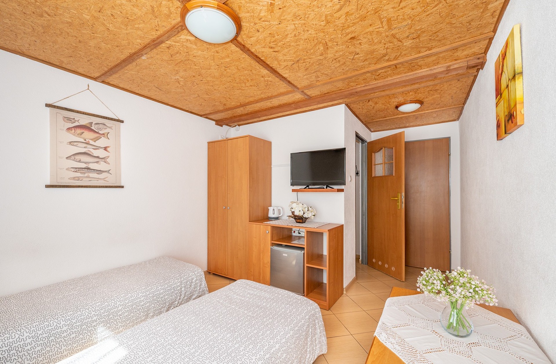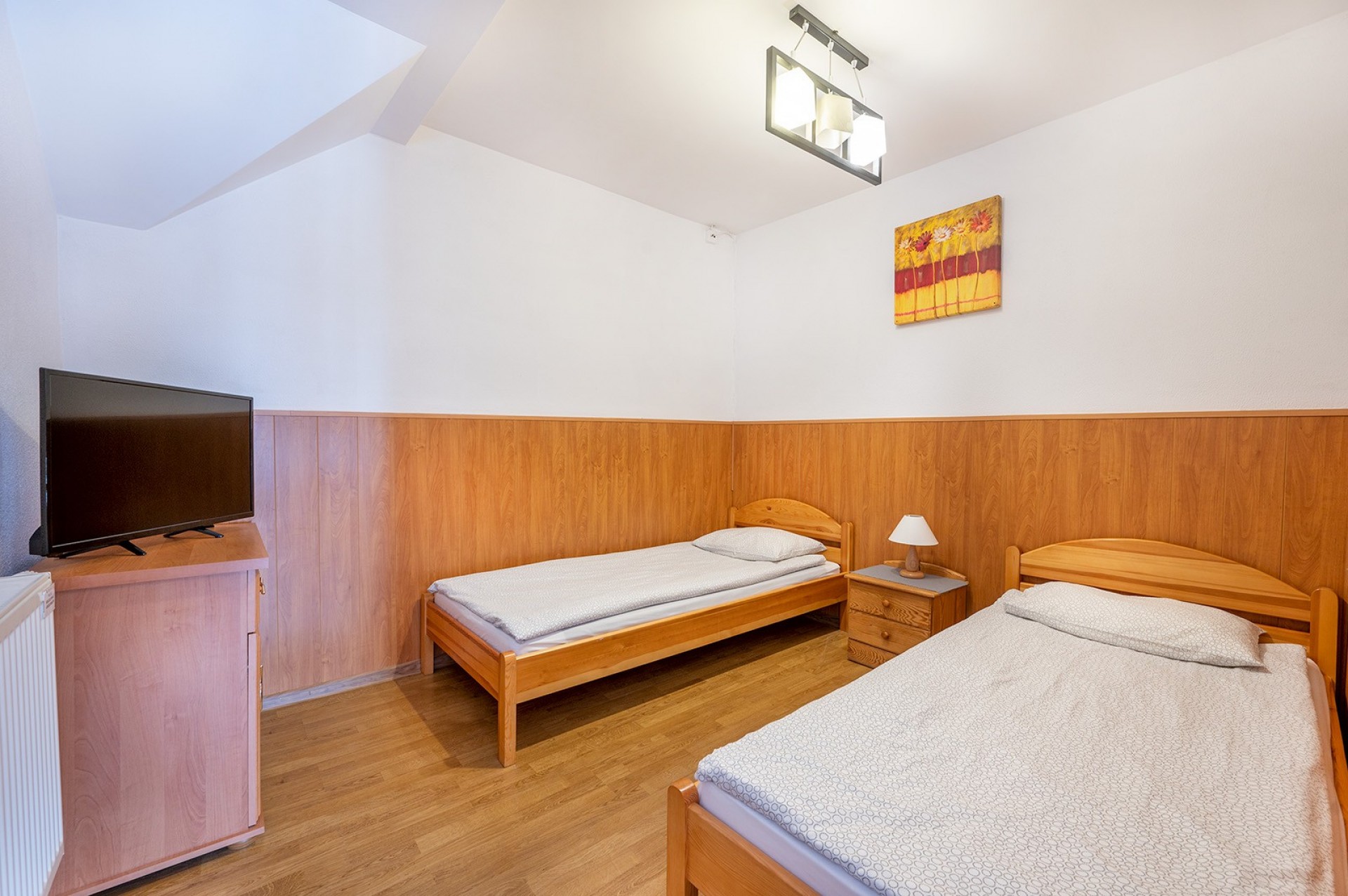 Do dyspozycji naszych gości oddajemy wygodne 2,3,4 oraz 5 osobowe pokoje z łazienkami, tv i lodówkami. Ilość miejsc 24.